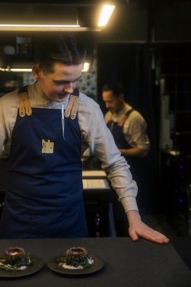 Læreplassen ved Stallen og Fyr gir Mathias erfaring fra to ulike kjøkken. På Stallen handler det om presisjon, detaljer og høy standard i hver servering. På Fyr er tempoet høyere, med flere gjester og mange bestillinger.